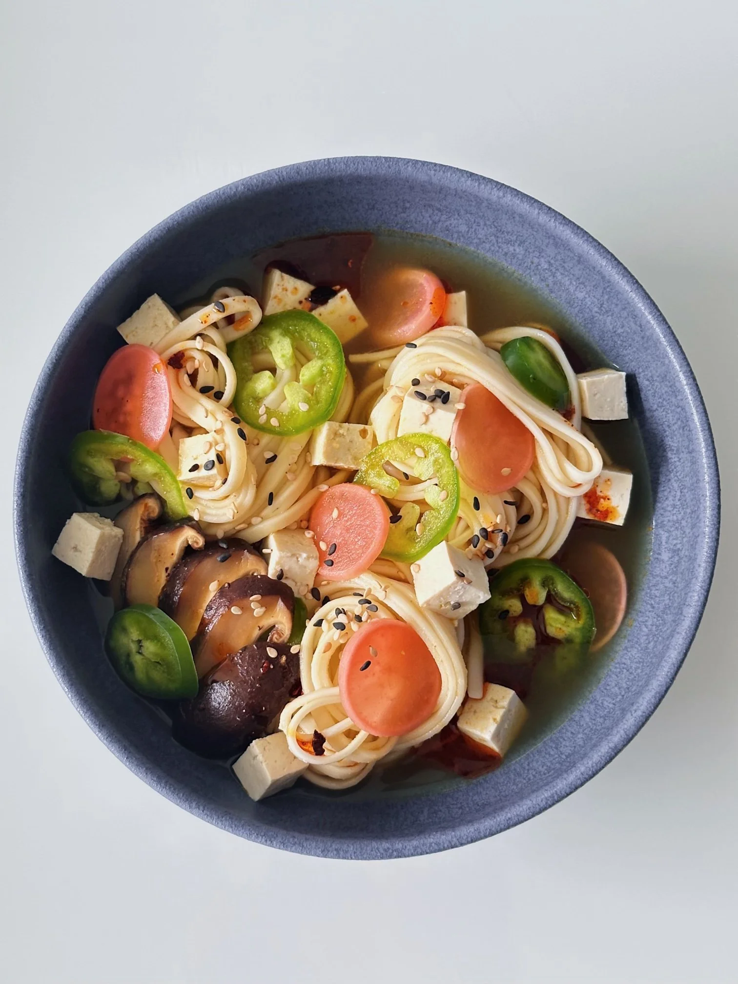 Place all the ingredients in a pot with the broth and bring to a boil. Once boiling turn to medium-low heat and let simmer for 30 minutes. Let broth stand for another 30 minutes. Strain the broth, discard the seaweed, and slice the shiitake mushrooms for topping. Enjoy with noodles and your toppings of choice!